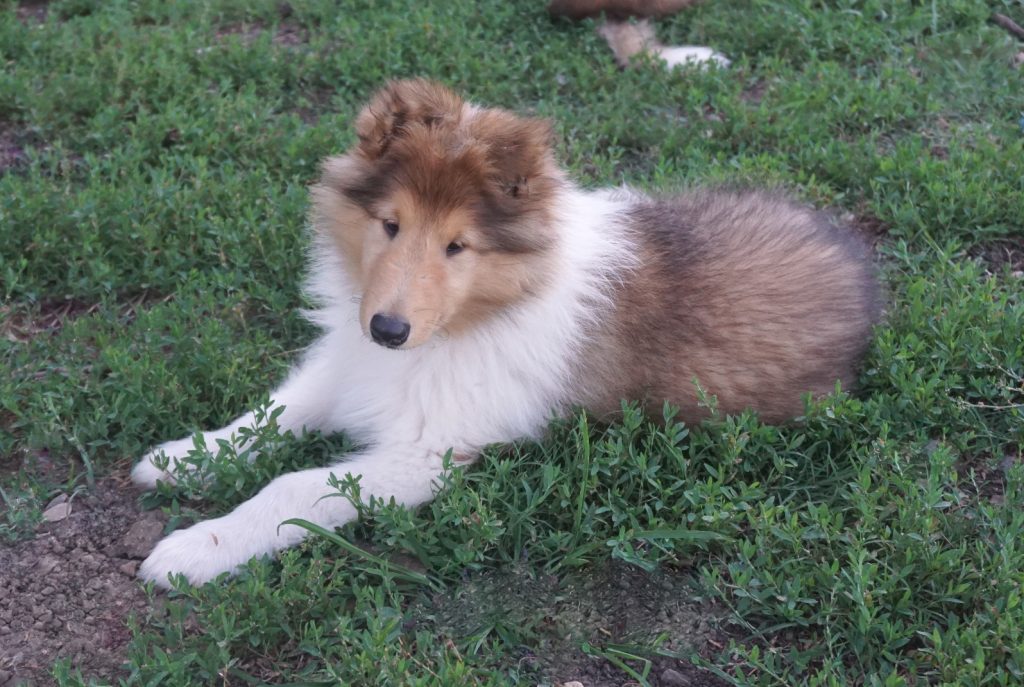 The first collie girl I’d like to applaud is Jane. I sold this spunky tricolor pup to Kristin Brooke Parma over 8 years ago. Jane was a pup meant to be. At birth, Jane’s umbilical cord had broken off way too short, and she was gushing blood. I applied pressure immediately to keep her from bleeding out. I used some blood stop powder on the hole, but it didn’t help enough. Finally, I grabbed some Super Glue, and a blob of that finally stopped the blood loss. I wrapped Jane’s belly with a bandage, and had to keep her dam from licking her until the wound healed. The makeshift treatment worked, and Jane thrived. She ended up with an adorable, smooth belly.