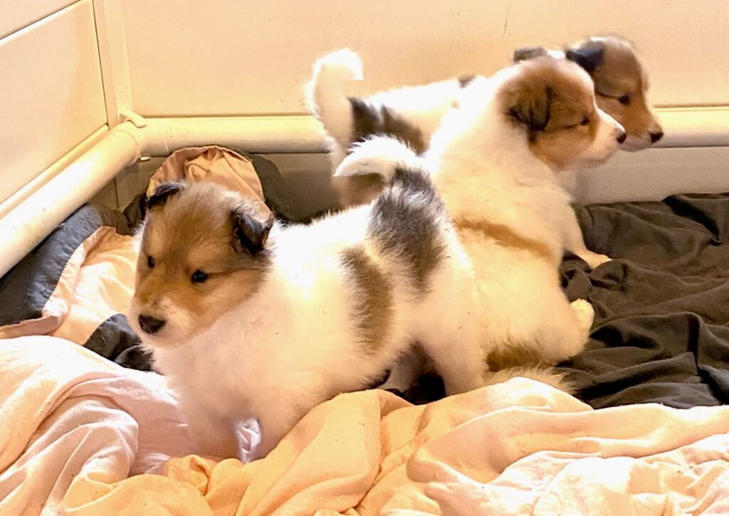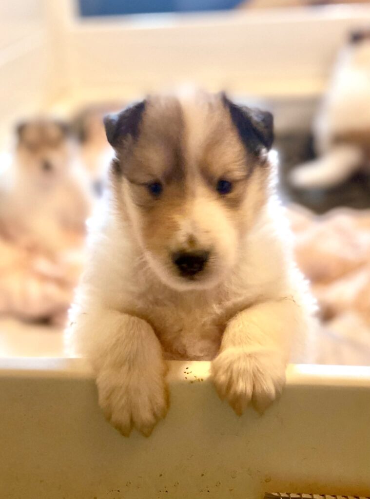 They were almost getting out of the whelping box, so they have been transferred to a double exercise pen where they have a lot more room to play. They are showing more of their personalities everyday. They are hilarious to watch and precious to hold.